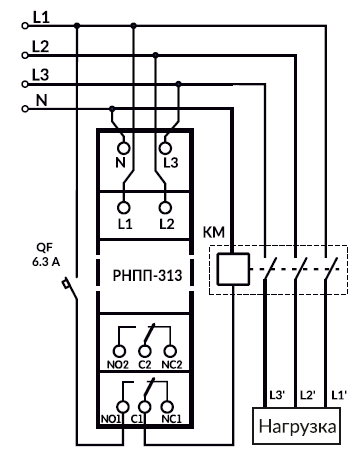 Реле напряжения, перекоса и последовательности фаз РНПП-313 предназначено для отключения нагрузки 400 В 50 Гц при: