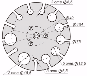 10 мм; 8 мм; 6 мм; 4 мм; без отверстий, - (по 7 каждого вида);