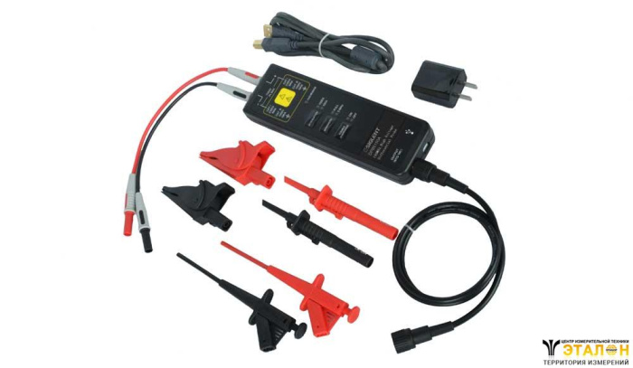 Дифференциальный пробник: полоса пропускания 100 МГц; время нарастания ≤3,5 нс; 1:50 / 1:500; дифференциальное напряжение ±150 / ±1500 В (DC+AСпик); 600 Вскз кат III или 1000 Вскз кат II между общей землей и одним из входов. Питания - USB, AC/DC адаптер 5 В/1 А.