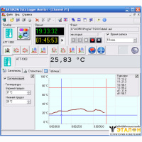 Первая вкладка – Самописец – позволяет наблюдать график изменений измеряемой величины во времени. Здесь же доступны курсорные измерения и «тревожная сигнализация», которая позволяет автоматически отслеживать выход измеряемого параметра за указанные границы. Кроме цветовой и звуковой сигнализации, программа посылает системные сообщения с кодом «аварийной ситуации», что позволяет подключать произвольные внешние приложения для нужной реакции на событие.