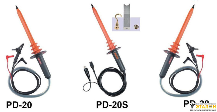 Высоковольтный пробник для измерения постоянного напряжения/ DCV до 30 кВ (±1 % в диапазоне 2…20 кВ; ±2 % 20…30 кВ) и переменного 50/ 60 Гц напряжения/ ACV до 20 кВ (±5% в диапазоне 2…20 кВ), ослабление 1000:1, входное сопротивление 500 МОм, длина кабеля 1 м, соединители: 4 мм изолированный коннектор типа «банан» папа (с изгибом 90 градусов, красный и черный) и коннектор типа «крокодил» (черный), масса 260 г.
