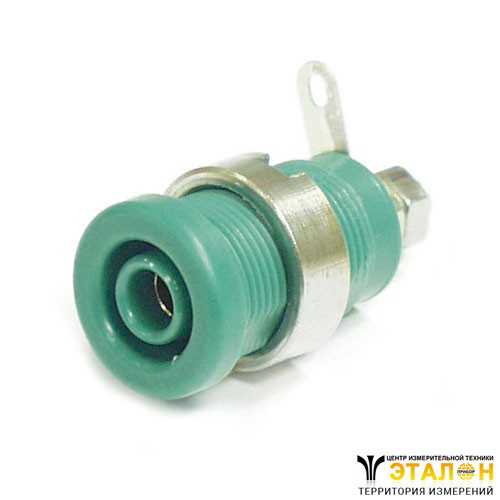 Гнездо 3265G внутренним диаметром 4 мм с двойной изоляцией, с контактным лепестком. Гаечное крепление и двойное гаечное соединением. Высота 23 мм, внешний диаметр 12 мм. Защика по CAT3, максимальный ток 25 А, максимальное напряжение 1000V, контактное сопротивление не более 5 мОм. Цвет зеленый.