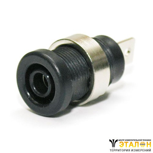 Гнездо 3266N внутренним диаметром 4 мм с двойной изоляцией с гаечным креплением и ножевым соединением (пластина 6 мм*8,5 мм с центральным отверстием). Высота пластиковой части 23 мм, внешний диаметр 12 мм. Защита по CAT 3, максимальный ток 25 А, максимальное напряжение 1000 V, контактное сопротивление не более 5 мОм. Цвет черный.