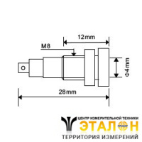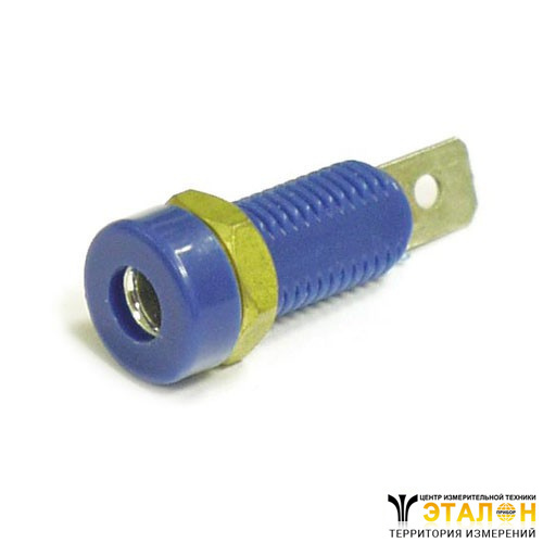 Гнездо (розетка) 641-blue с внутренним диаметром 4 мм, с ножевым соединением с контактным отверстием диаметром 2 мм. Гаечное крепление с шайбой, общая длина 28 мм. Цвет синий.