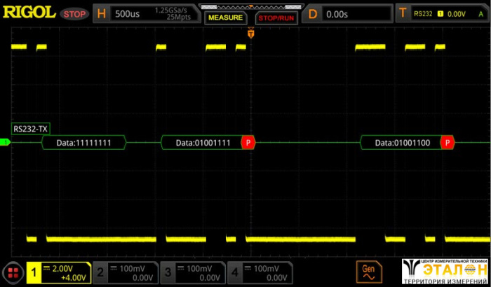 Опция DS8000-R-COMP добавляет в осциллографы Rigol серии DS8000-R возможность декодирования и запуска по сигналам шин RS-232/UART.