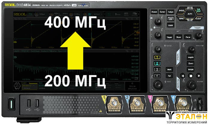 Опция DHO4000-BWU2T4 позволяет увеличить полосу пропускания осциллографов Rigol серии DHO4000 с 200 МГц до 400 МГц.