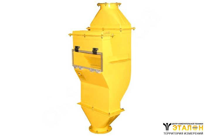 Колонка состоит из корпуса, в котором установлен ряд перегородок. Продукт в аспирационную колонку поступает через приемный патрубок и проходя через перегородки продувается воздухом, который уносит легкие примеси в аспирационную систему.