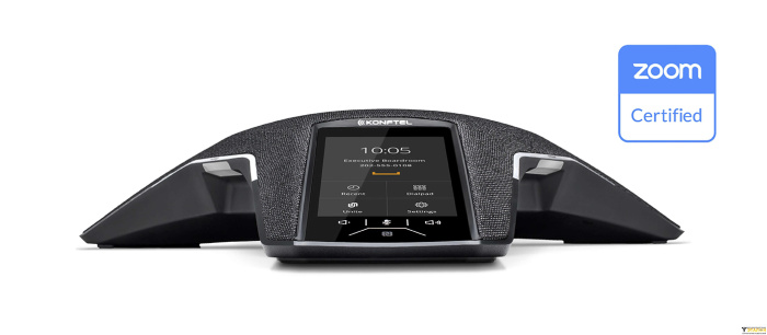 Есть два превосходных способа для пользователя легко взаимодействовать с Konftel 800. Встроенный цветной сенсорный экран предоставляет доступные функции, удобные иконки, дополненные кнопками регулировки громкости и отключения звука. Управлять конференц-телефоном также возможно, используя мобильное приложение Konftel Unite, поддерживающее запуск конференц-связи в одно касание и вызов личных контактов.