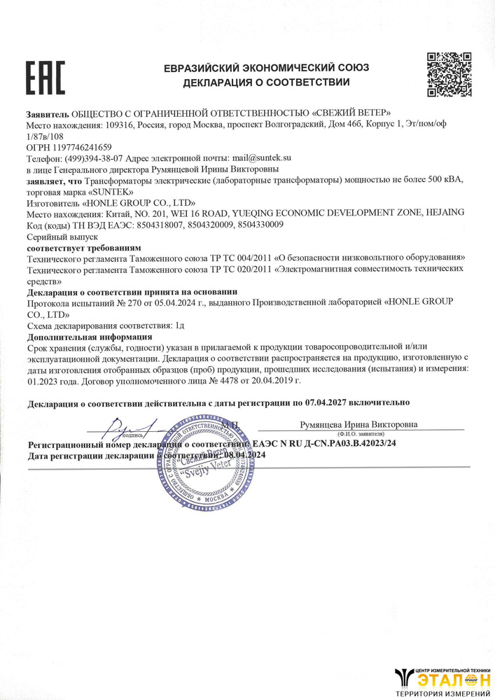 | 1 | Автотрансформатор ЛАТР однофазный 0-300 Вольт (20А) SUNTEK 5000ВА | 1 |