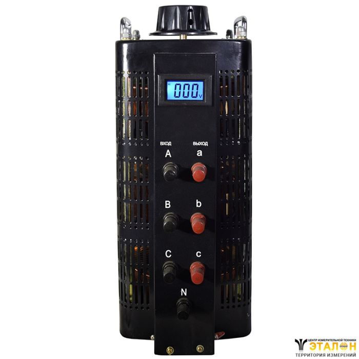 Автотрансформатор ЛАТР SUNTEK 6000 ВА - трехфазный прибор с ЖК-табло, работает от сети 380 В и используется для постоянного удержания заданного напряжения. Максимальный ток на фазе 8 А.