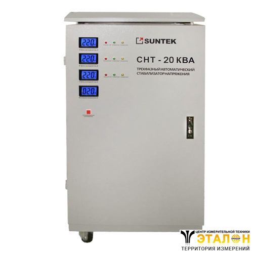 Стабилизатор трехфазный SUNTEK СНТ 20000 ВА используется для защиты оборудования, установленного на промышленных объектах, в частных домах, дачах, от перепадов напряжения и короткого замыкания. Стабилизатор поддерживает широкий диапазон входного напряжения и отключается только при выходе за рамки фазного 120-285 Вольт.