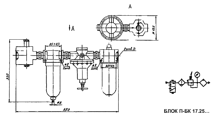 Пневмоблок кондиционирования сжатого воздуха П-БК17.ХХ. ТУ-2-053-0224842-019-90