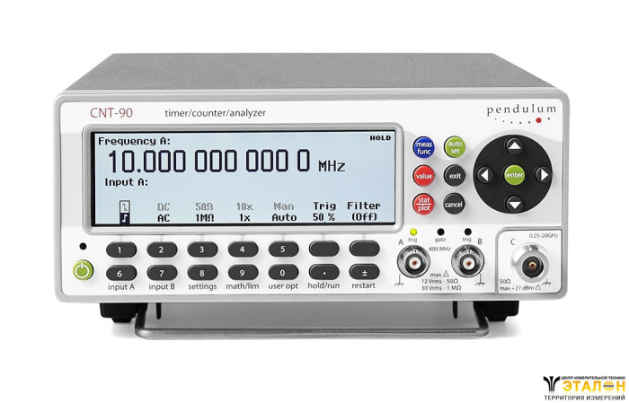 Универсальные таймеры/счетчики/анализаторы CNT-90 предназначены для высокоточного измерения частоты, периода, фазы и рабочего цикла в задаваемых пользователем пределах, калибровки и анализа времени и частоты, статистической обработки результатов измерений и выполнения математических операций с полученными данными. Наличие GPIB/USB интерфейса дает возможность подключать прибор к персональному компьютеру и с помощью программного обеспечения TimeView производить регистрацию, анализ и архивирование результатов измерений. Частотомеры данной серии имеют графический интерфейс и усовершенствованное управление измерениями.
