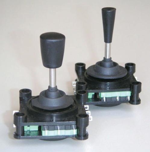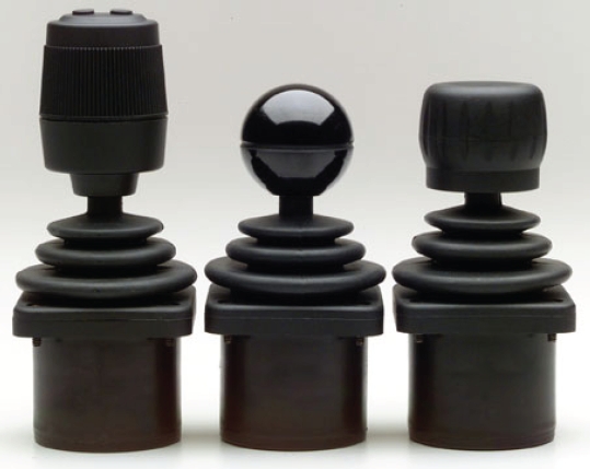 - опционально: различные исполнения рукояток, усиленная пружина, без возврата в центральное положение, бесконтактный (эффект Холла), различные варианты монтажа