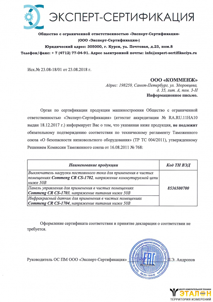 Commeng CR CS-1702 соответствует требованиям следующих стандартов: