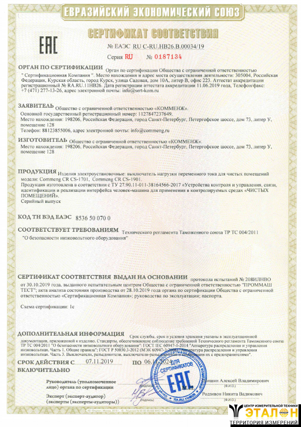 | 1 | Выключатель нагрузки переменного тока для применения в чистых помещениях Commeng CR CS-1901 | 1 |