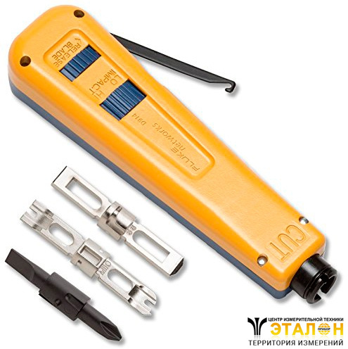 В рукоятку инструментов Fluke серии D914 также встроены крюк и спаджер. Используйте крюк для удаления провода из блока любого типа или для отслеживания провода. Используйте указку для удаления модуля поперечного соединения из монтажного кронштейна. Лезвие заменяется быстро и легко; дополнительное место для хранения лезвия находится в рукоятке.
