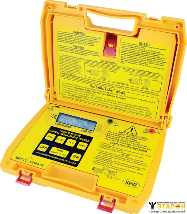 | Особенности | Звуковой и текстовый индикаторы, предупреждающие о наличии | опасного напряжения в подключаемой цепи. Автоматический разряд накопительного конденсатора. Индикация времени продолжительности теста (до 99,9 сек). Автоматическое отключение высокого напряжения в случае пробоя изоляции. Хранение данных калибровки в перепрограммируемом ПЗУ (EEPROM). Встроенный контейнер для укладки ЗИП. Ударопрочный корпус. |