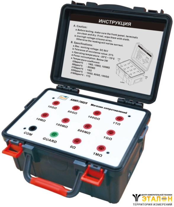 Магазин сопротивлений АКИП-7502/5 представляет собой высокоточный набор высокоомных резисторов, предназначенный для поверки и калибровки измерителей сопротивления изоляции. Он идеально подходит для использования в лабораторных и промышленных условиях, где необходима высокая точность при измерении сопротивления изоляции в широком диапазоне значений.