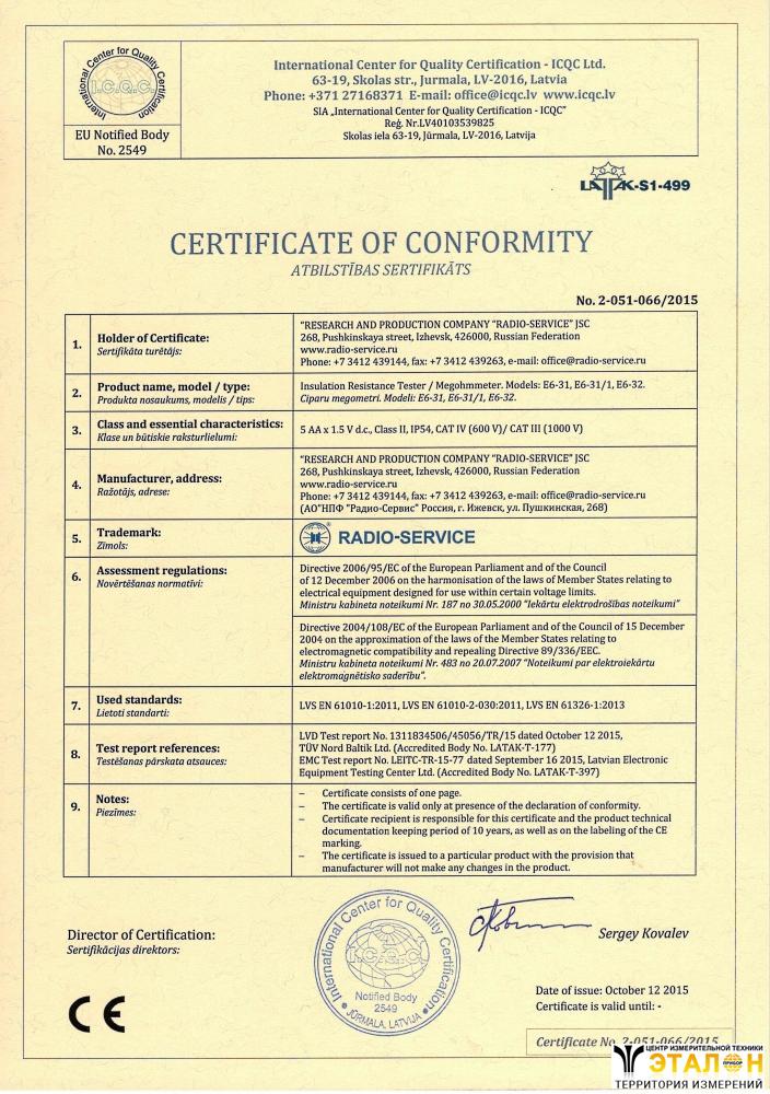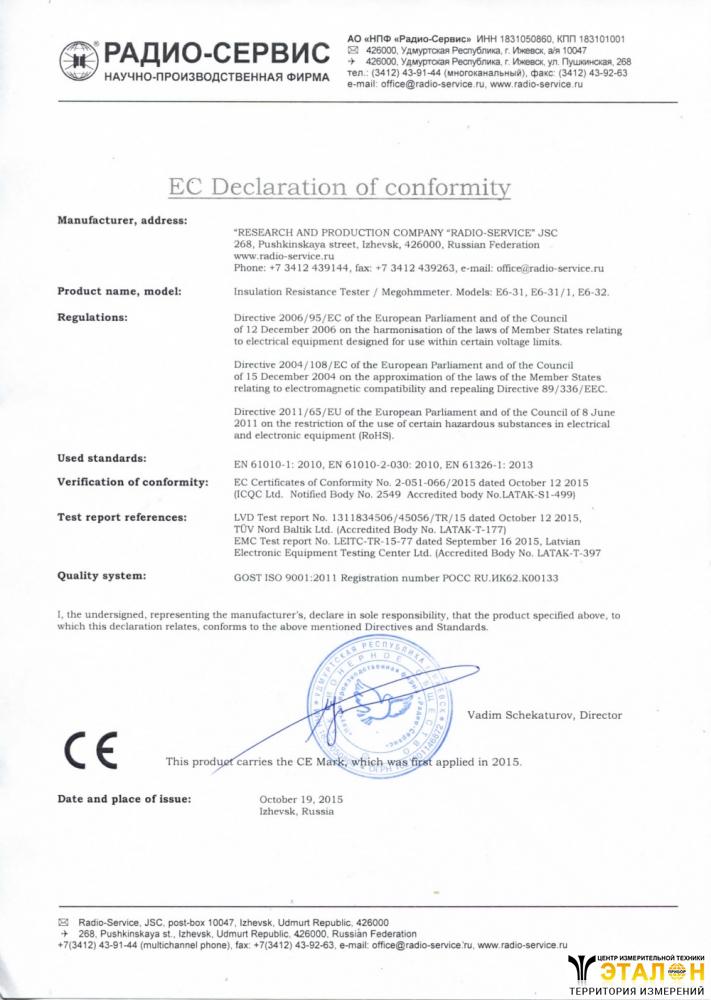 | 1. | Цифровой мегаомметр Е6-31/1 | 1 |
