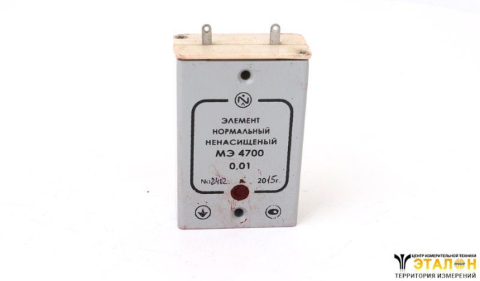 Элемент нормальный ненасыщенный МЭ4700 - это гальванический обратимый элемент, используемый в качестве образцовой меры ЭДС (электродвижущей силы). Отклонение электродвижущей силы при этом обычно колеблется в диапазоне не более 100 мкВ, а среднее ее значение при стандартной температуре эксплуатации (+20°С) находится в пределах 1,018800 - 1,019600 Вольт.