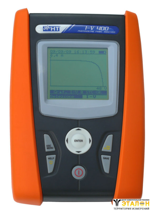 Многофункциональный прибор (тестер) для контроля ВАХ (I-V Curve test) фотоэлектрических панелей, установок и модулей. Обнаружение возможных сбоев и проблем в ФЭ устройствах (ФЭУ). Измерение параметров ФЭУ (по 4-х пр методу): постоянное напряжение до 1000 В (Voc, Vmp), постоянный ток до 15 А (Imp, Isc), мощность до 10 кВт (Pmax), коэффициент заполнения, построение кривой ВАХ по 128 точкам. Измерение температуры фотоэлектрических панелей (-20...100 °С) и интенсивности излучения (1...100 мВ) с использованием соответствующих аксессуаров HT304N (в комплекте поставки) и PT300N (опция). Внутренняя память: 256 кБ, 249 ВАХ измерений, 30 типов модулей (до 30.000 через ПО). Интерфейсы USB, Wi-Fi. ПО TOPVIEW. ЖК-дисплей 128 х 128. Питание 1,5 В×6 (тип АА), автовыключение. Масса, габариты: 1,2 кг; 235 х 165 х 75 мм.