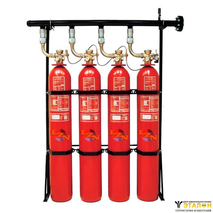 Комплекты соединяются общим коллектором с основной батареей и осуществляют выпуск огнетушащего вещества за счет давления газа в общем коллекторе после срабатывания УПЭ на основной батарее.