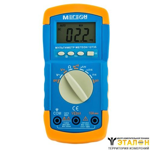 Недорогой цифровой мультиметр с автоматическим выбором диапазона МЕГЕОН 12735, это точный и надежной прибор, который будет радовать Вас своей долгой работой. В мультиметре реализована очень удобная функция автоматического выбора диапазона. Нет необходимости постоянно перещелкивать диапазоны, что ускоряет и упрощает процесс работы с прибором. Яркая подсветка дисплея позволяет использовать мультиметр в местах со слабым освещением. Компактный размер и малый вес цифрового мультитметра, позволяет его траспортировать и хранить без дополнительных сложностей. Мультиметр с автоматическим выбором диапазонавыполнен очень эргономично, прекрасно лежит в руке оператора. Прибор выполняет следующие виды измерений с автоматическим выбором диапазона: