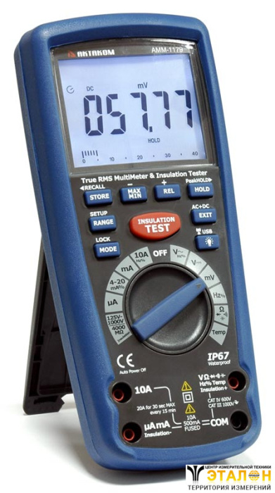 Цифровой мультиметр АКТАКОМ АММ-1179 обладает высокой функциональностью и предназначен для проведения широкого круга измерений. Возможность измерения истинных среднеквадратических значений (True RMS) позволяет цифровому мультиметру АММ-1179 корректно проводить измерения искажённых и несинусоидальных сигналов. Наличие в цифровом мультиметре АММ-1179 быстродействующей графической шкалы даёт возможность наблюдать динамику изменения измеряемых величин. Кроме основных, типичных для мультиметров функций, АММ-1179 позволяет измерять сопротивление изоляции до 4 ГОм на тестовом напряжении до 1000 В.