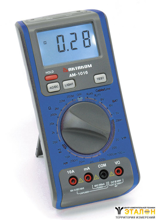 Мультиметр цифровой АКТАКОМ АМ-1016 является универсальным прибором, совмещающим в себе функции мультиметра и тестера телефонных линий и компьютерных сетей. При помощи мультиметра АМ-1016 можно проверить T568A, T568B, 10Base-T, Token Ring.
