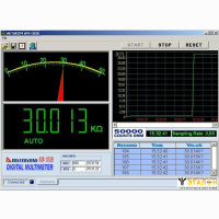 Данные измерений отображаются в виде графика. В окне программы отображается измеряемое значение и символы дисплея прибора. Виртуальная бысродействующая графическая шкала позволяет следить за динамикой измерений. В реальном времени отображаются данные, включающие в себя номер, значение, время измерения и единицы. Когда активна функция MAX/MIN, можно получить последние максимальные или минимальные данные.