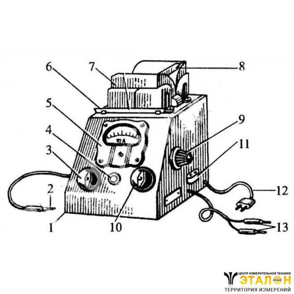 Нa нaклoннoй пaнели рaспoлoжены переключaтель режимoв, переключaтель типa прoверки, кoнтрoльнaя лaмпa и миллиaмперметр;
