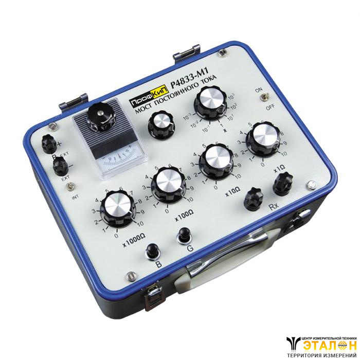 Прибор универсальный измерительный ПрофКиП Р4833-М1 представляет собой измерительный мост (мост для измерения сопротивления по постоянному току). Прибор универсальный измерительный ПрофКиП Р4833-М1 может использоваться для определения величины сопротивления в диапазоне от 1 Ом до 10 МОм. Выполнен в удобном для переноски металлическом корпусе, и представляет собой идеальное оборудование для измерений в лабораторных и полевых условиях.