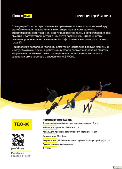 Комплект поставки тестера дефектов обмоток электрических машин ПрофКиП ТДО-06: