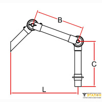 Стандартные дымоприемники System 50 возможно заказать в 3-х различных цветах шарниров - красный, белый или черный. Код цвета нужно добавить к основному артикулу «-4», «-5» или «-050». Дымоприемник Alsident® состоит из 3-х основных элементов: шарнирный дымоприемник, крепление и раструб дымоприемника.