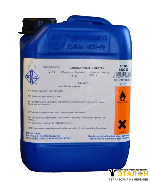 Флюс Stannol 900-7/1H — водоотмывный, спиртосодержащий, активный флюс на основе органических веществ (активаторов, добавок) отвечающий стандарту DIN EN 29454-1, тип 2.1.2 (DIN 8511 F-SW25). Формула флюса создана для пайки волной припоя.
