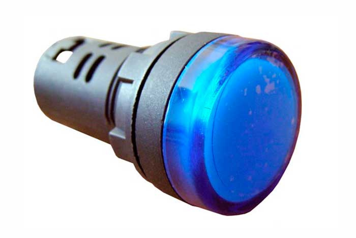 Арматура светосигнальная AD22-22DS синяя 24 В AC/DC предназначена для индикации наличия напряжения электрической сети, а также рабочего состояния электротехнического оборудования (нормального, требующего повышенного внимания и аварийного).