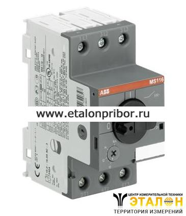 Кол-во полюсов: (3P). Кол-во модулей: 3. Номинальное напряжение: 690 В, 50 Гц. Уставка электромагнитного расцепителя: 1,0-1,6Iн, где Iн–номинальный ток. Габаритные размеры (Ш×В×Г): 45×90×85,6 мм. Крепление: на DIN-рейку. Изготовитель: «АВВ». Марка Диапазон регулирования Iн, А Предельная коммутационная способность, кА MS116-0,16 0,1—0,16 50 MS116-0,4 0,25—0,4 50 MS116-0,63 0,4—0,63 50 MS116-1,0 0,63—1,0 50 MS116-1,6 1,0—1,6 50 MS116-2,5 1,6—2,5 50 MS116-4,0 2,5—4,0 50 MS116-6,3 4,0—6,3 50 MS116-10,0 6,3—10,0 50 MS116-12,0 10—12,0 25 MS116-16,0 10—16,0 16