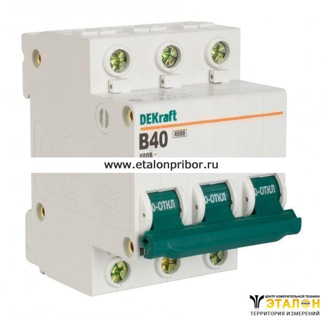 Основные данные Автоматический выключатель ВА-101 3п 40А 4,5кА DEKraft хар B:
