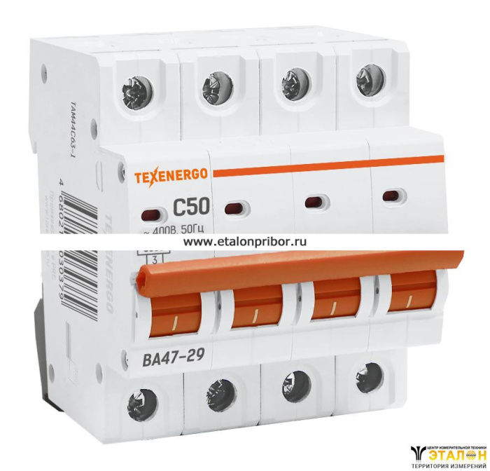 Основные данные Автоматический выключатель ВА 4729 4п 50А 6кА Texenergo хар-ка С: