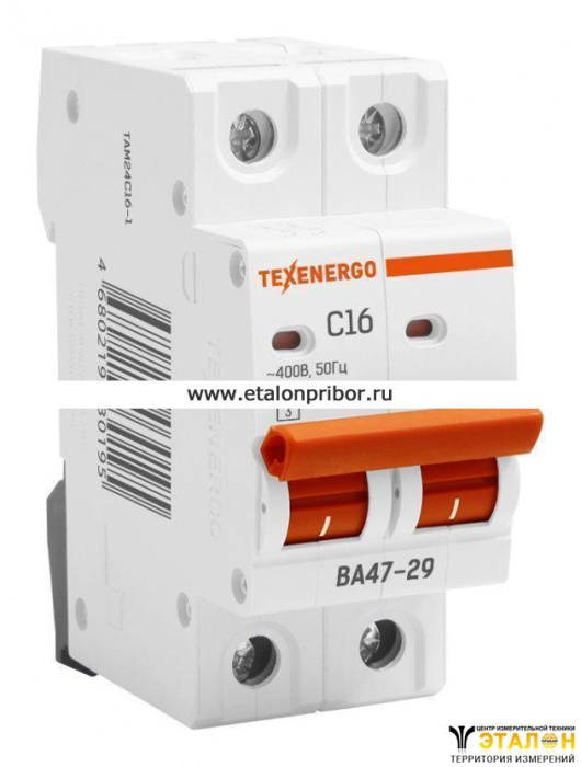Автоматический выключатель ВА47-29 2п 16А 6кА Texenergo хар-ка С