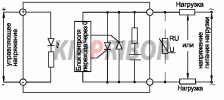 • Встроенная RC-цепочка, шунтирующая выход, повышает надежность работы ТТР в условиях импульсных помех, особенно при коммутации индуктивной нагрузки.