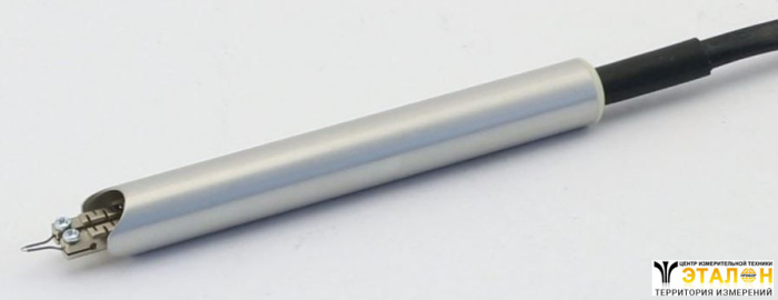 Инструмент предназначен для ручного сваривания ленточных и проволочных выводов с металлизированными участками подложек. В инструменте используется V-образный вольфрамовый электрод. Сварочный импульс запускается от встроенного датчика который настраивается на определенное усилие срабатывания. Опционально есть возможность запускать сварочный импульс от педали.