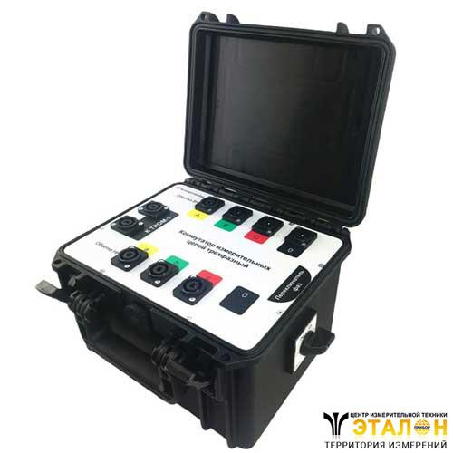 Коммутатор для измерения сопротивлений обмоток трансформатора поочередно по трем фазам в двухканальном режиме вместе с комплектом проводовЧЭП2320 для миллиомметра ТРОМ-1 позволяет ускорить процесс измерения сопротивления обмоток трансформаторов большой мощности за счет того, что измерительные провода подключаются ко всем трем фазам трансформатора за один подъем на трансформатор.