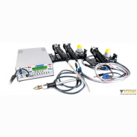 РЕГУЛЯТОР МОЩНОСТИ Мультирежимный программируемый регулятор мощности для импульсных паяльных инструментов. импульсных паяльных инструментов, в комплекте педаль. Скорость нагрева задается изменением мощности подводимой к инструменту. Время нагрева программируется. Программируемый режим ступенчатого нагрева. Импульсный съемник изоляции ИС-70 (аналог TS-15) Зачистка изоляции на проводах без перегрева. Возможна зачистка термостойкой изоляции на проводах типа МГТФ, МС и т.п. Двухконтурный импульсный термопинцет ДИП-65 (аналог CT-15) Монтаж-демонтаж керамических компонентов с контролируемой скоростью нагрева. Одноконтурный импульсный термопинцет ОИП-90 (аналог TW-15) Распайка кабеля на разъме может производится без повреждения соседних выводов за счет прогрева непосредственно контакта разъема. Подставка под два импульсных инструмента ТЕРМОПРО Магнитное место для хранения ключа, место для ЗИП, зажим для наждачной бумаги (предназначн для зачистки насадок) Подставка под один импульсный инструмент ТЕРМОПРО Магнитное место для хранения ключа, место для ЗИП, зажим для наждачной бумаги (предназначн для зачистки насадок)