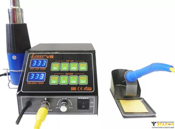 Станция имеет более компактный размер по сравнению с предшествующей моделью Lukey V5 и более производительный термовоздушный фен.