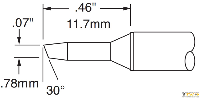 Основные технические характеристики CVC-6BV3018S Картридж-наконечник для СV/MX, скос 30° 1.78х11.7мм (замена STTC-005) METCAL