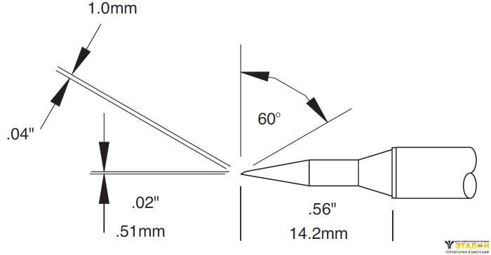 Metcal CVC-6BV6005A (замена STTC-046). Паяльное жало для СV/MX скос 60° удлиненный 1.0 × 14.2 мм