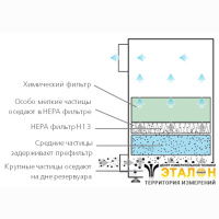 • Эффективность комбофильтра: 99,997% (Класс Н14 ГОСТ Р ЕН 1822-1-2010)