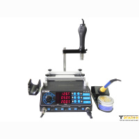 Уникальная паяльная станция Element 853AAA 3 в 1 совмещает в себе фен, паяльник и нагреватель плат. Станция предназначена для пайки любых электронных компонентов и мобильной техники. В ней используется мощный микропроцессор, что обеспечивает точный температурный контроль, быстрый нагрев и удобство работы. В платформе предварительного нагрева используется керамика высокого качества, что обеспечивает равномерный нагрев. Керамический нагревательный элемент паяльника имеет длительный срок службы. Держатель плат оснащен удобными фиксаторами, что позволяет надежно закрепить плату.